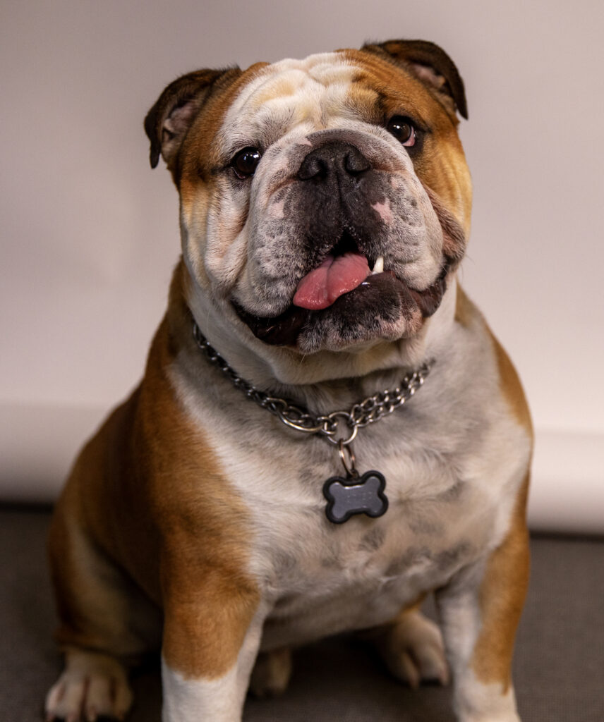 Konrad er husets kontorhund, produkttester af bolde og tyggeben samt velkomstkomité for personalet.